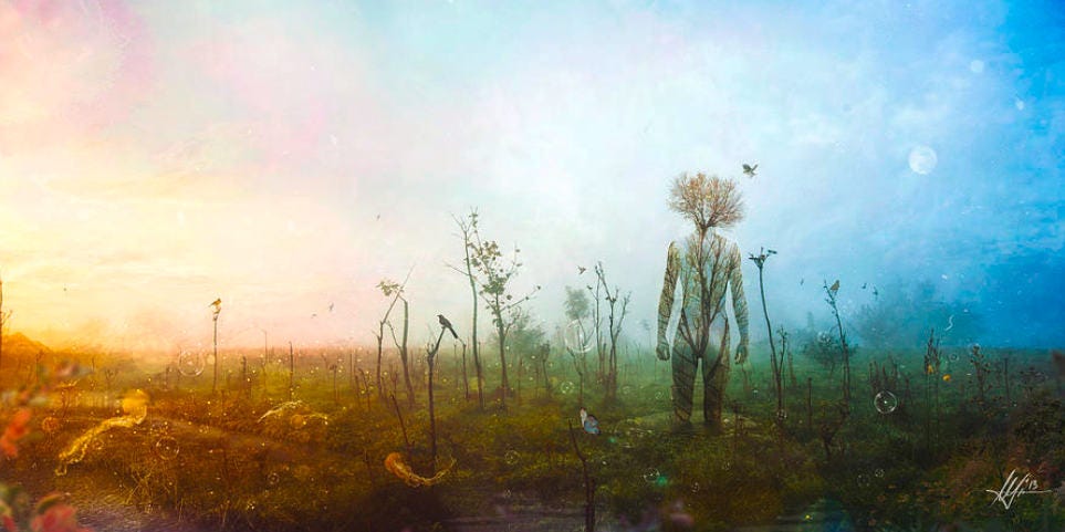 A natureza não é apenas essa beleza muitas vezes implícita — em que precisamos ligar os pontos — nos movimentos das plantas, céu, animais, terra e água. Está no ar que respiramos, na comida que ingerimos, na temperatura dessa delicada camada de gases que cobre a superfície do globo, finíssima em comparação com o tamanho do planeta. Está também no sangue correndo em nossas veias, no brilho que ilumina nossos pensamentos, que não é diferente do brilho nos olhos do Anú.